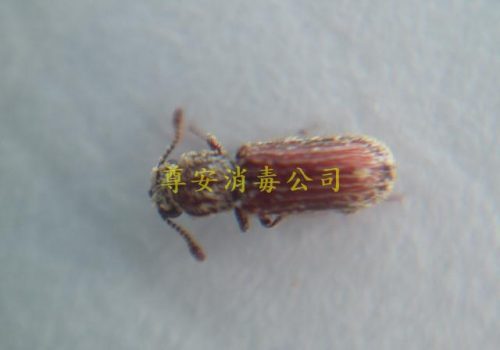 粉蠹蟲(背部) 破壞產生的木頭粉削 線板破壞的情況 粉蠹蟲簡略說明: 與蠹蟲習性相同,是